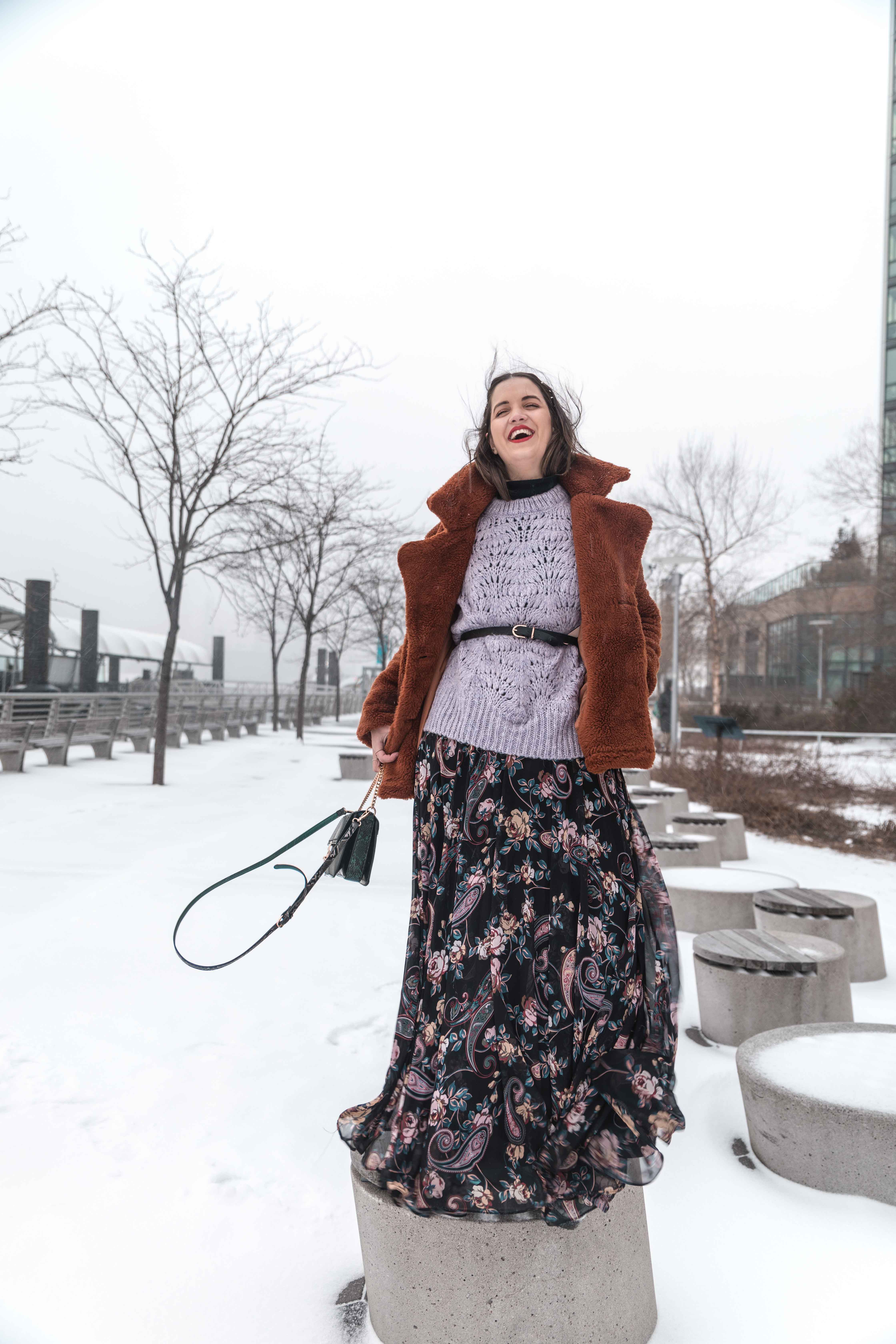 Dress (yes, it’s a dress, not a skirt), Lulus – Sweater and bag, River Island – Coat, Cotton Candy LA – Shoes, Dr. Martens
